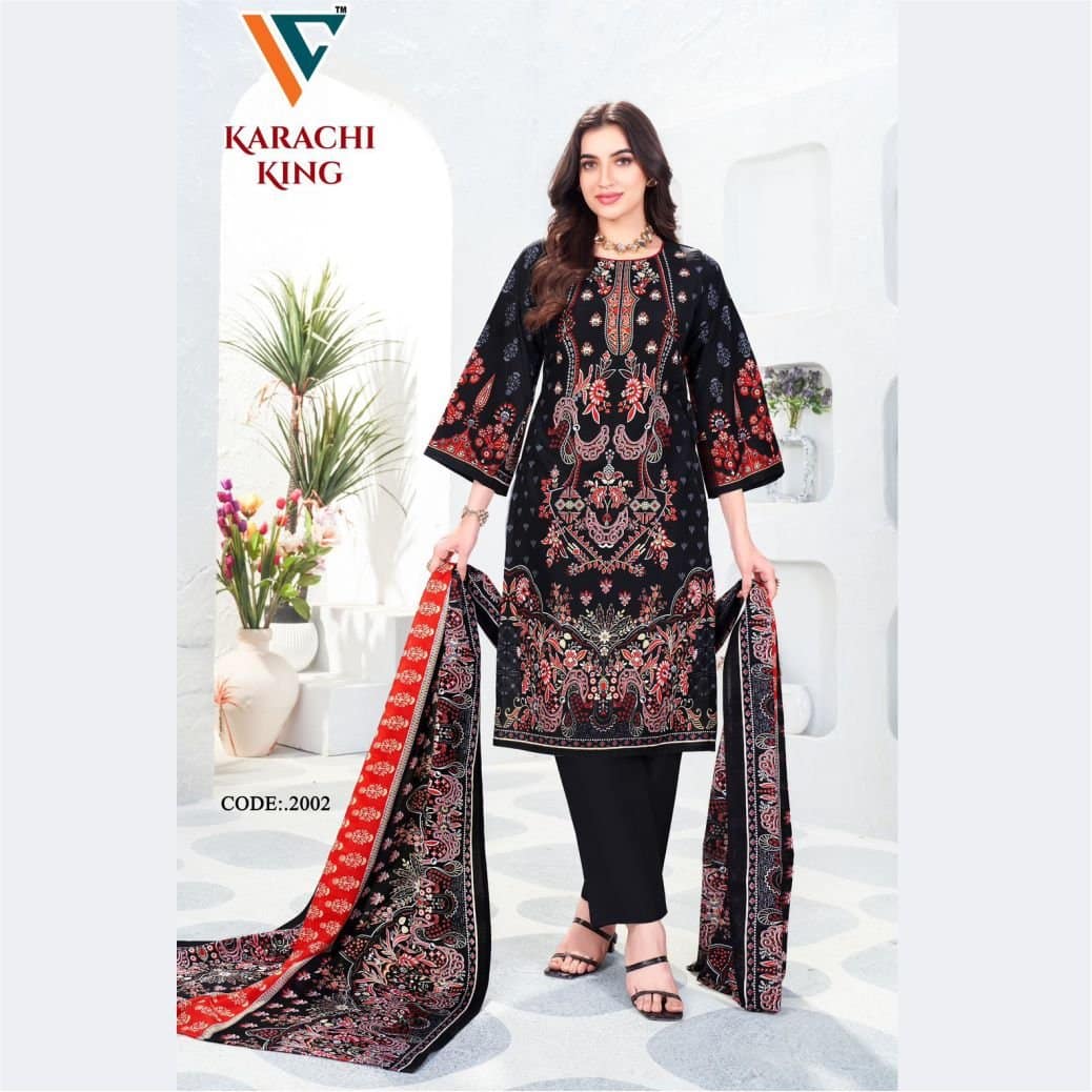 Enhance your ethnic wardrobe with this elegant black Pakistani print cotton salwar suit material. Featuring intricate embroidery and a matching printed cotton dupatta, this unstitched set is perfect for weddings, festivals, and special occasions. Pure cotton fabric ensures comfort and style.