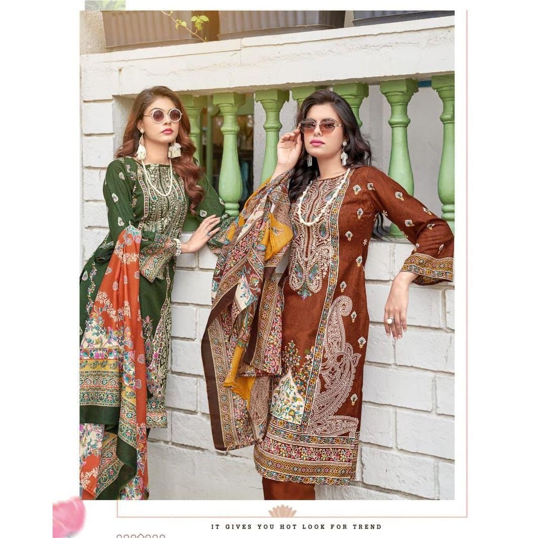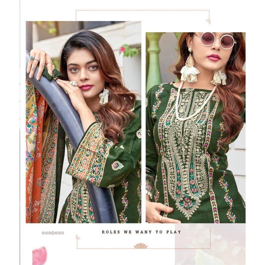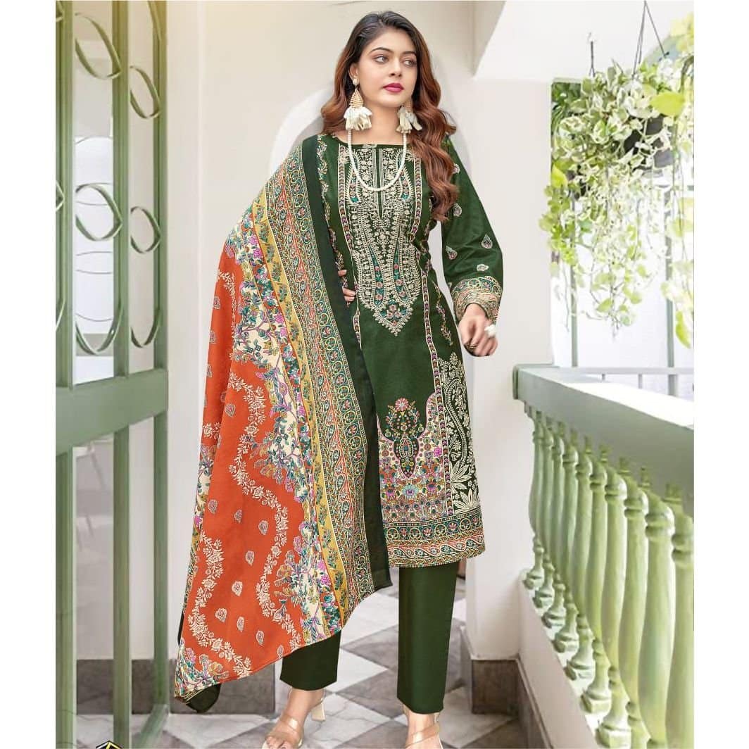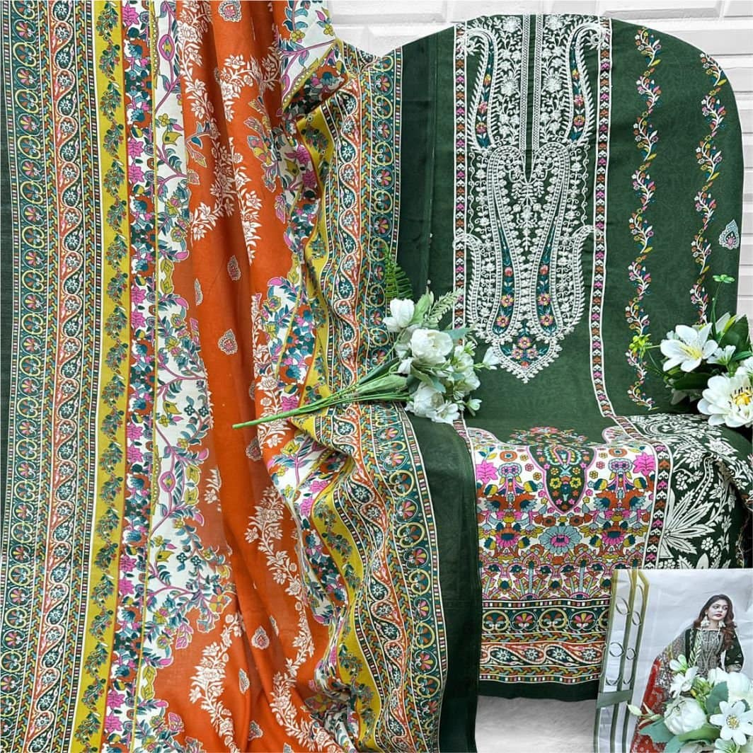Fabiha Fashion presents premium quality cotton fabric in a rich deep olive green shade, adorned with contemporary digital prints and traditional hand embroidery. This versatile fabric is ideal for creating custom ethnic wear that combines modern aesthetics with timeless craftsmanship.