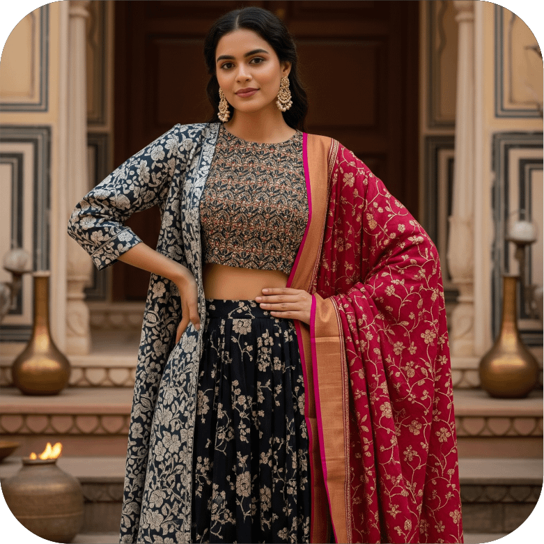 Black Pakistani Print Cotton Salwar Suit Material | Unstitched Embroidered Dress Fabric with Printed Dupatta | Women’s Ethnic Wear | Fabiha Fashion